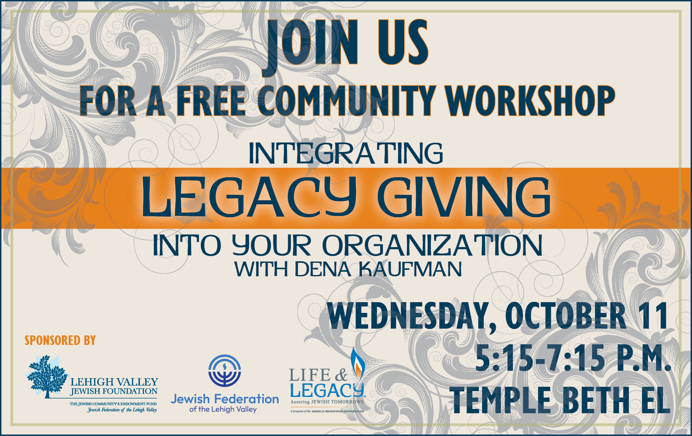 Join us for a free community workshop on Integrating Legacy Giving Into Your Organization.