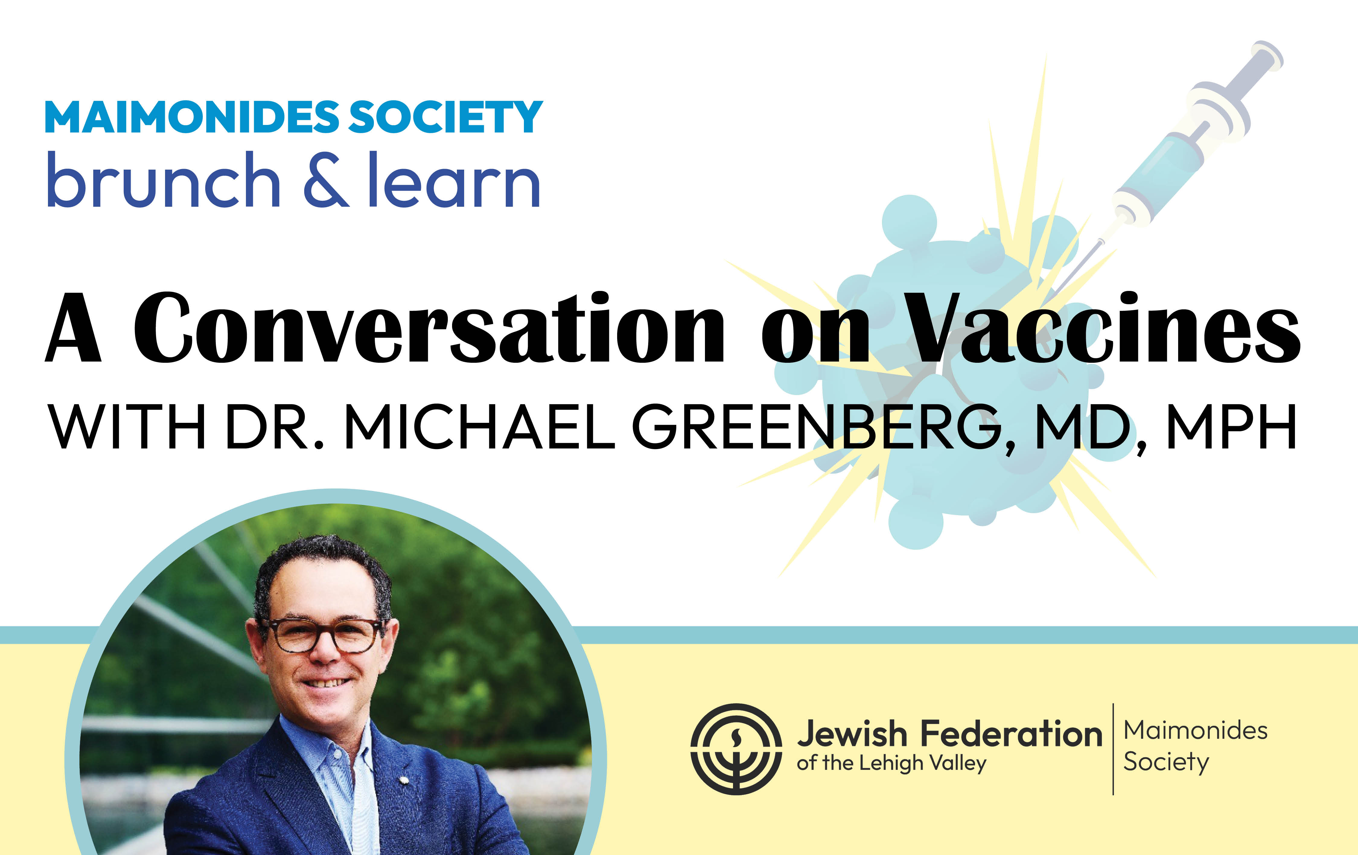 Join the Maimonides Society for a Brunch & Learn where Dr. Michael Greenberg will discuss the development of vaccines.