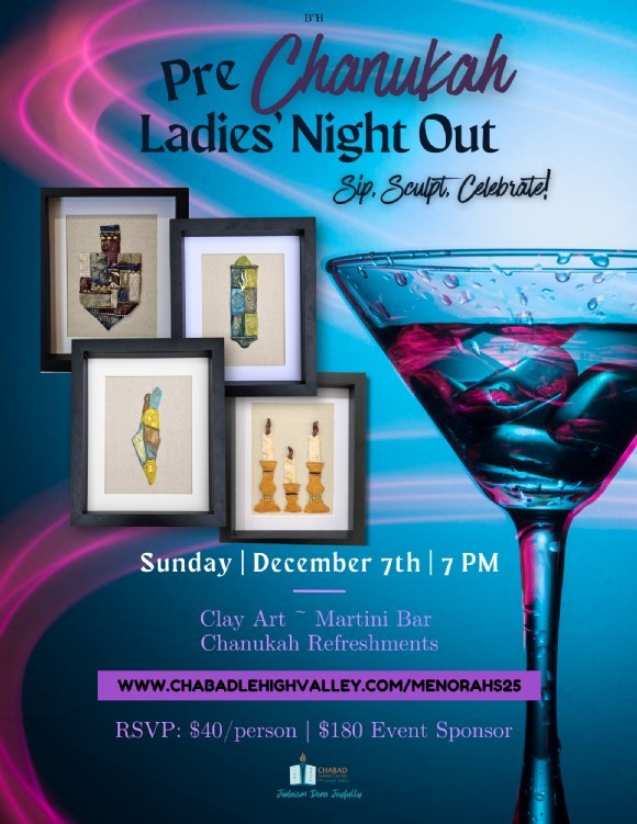 Join us for a Pre-Chanukah Ladies Night! Menorahs and Martinis is always one of our most popular women's events - Don't miss it!