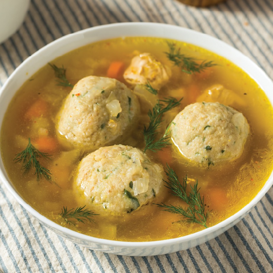 Skin four large chicken breasts. Add to a Dutch oven along with the celery, carrots, and parsley, and salt to taste. Cover with water, bring to a full boil, and cook for 7 minutes. Simmer for 1½ hours, covered, adding matzo balls for the last half hour, remembering to cover again.