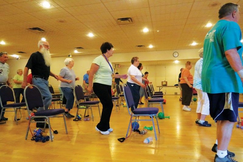 Several exercise classes are designed for older adults as well. Chair yoga provides a challenging workout while remaining accessible for people with physical limitations. A self-directed pickleball program combines tennis, badminton and table tennis for a fun workout.